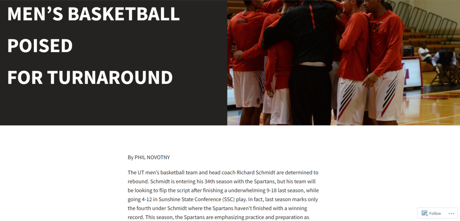 My first experience with tone and voice was for the sports section of the University of Tampa's student newspaper, The Minaret. Beginning my freshman year, I began writing stories on UT’s athletes by gathering quotes from them and their coaches.