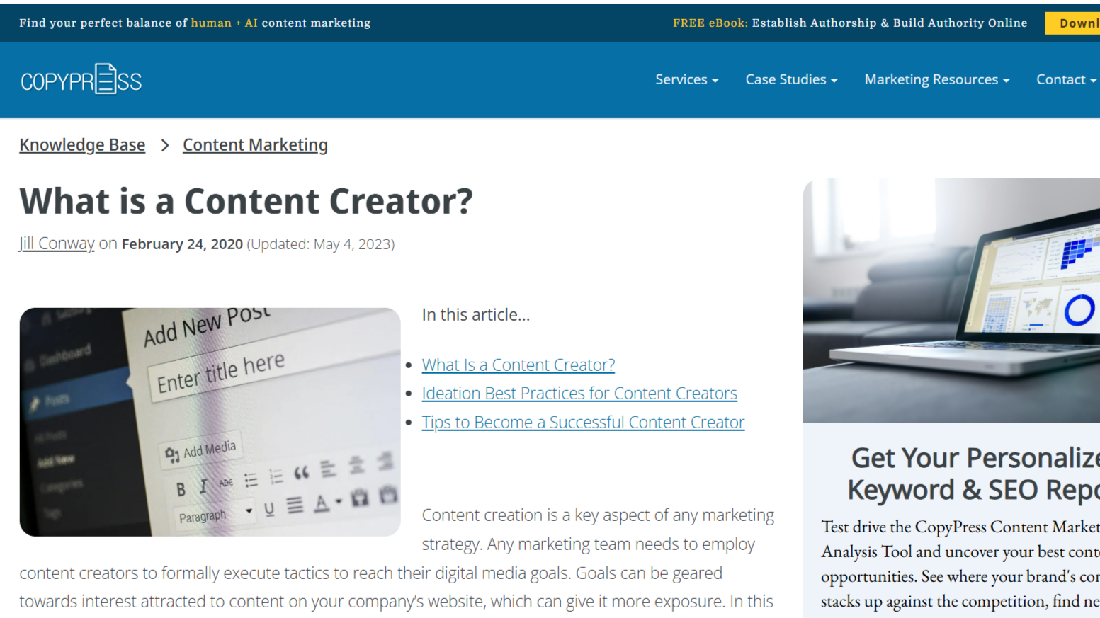 I also wrote articles for CopyPress' website and additional clients to help users understand the importance of content marketing and the various components behind generating high-quality content.