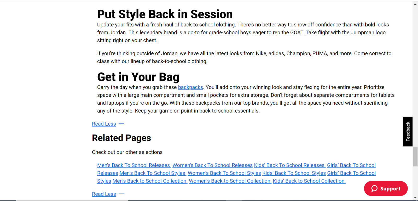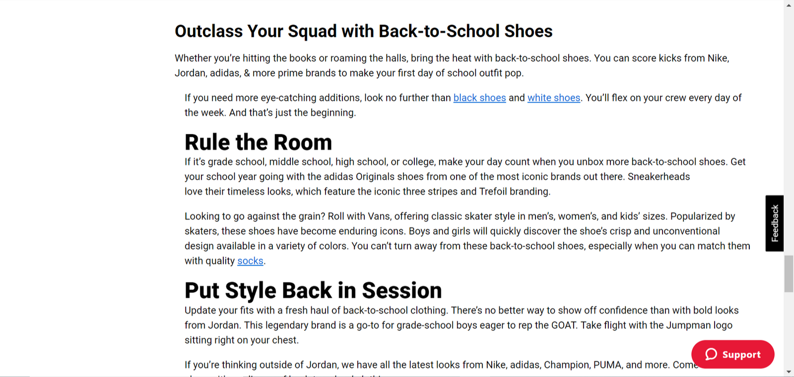 I was able to leverage this experience to write SEO articles for Foot Locker. Once drafted and approved, they would be published at the bottom of product pages.